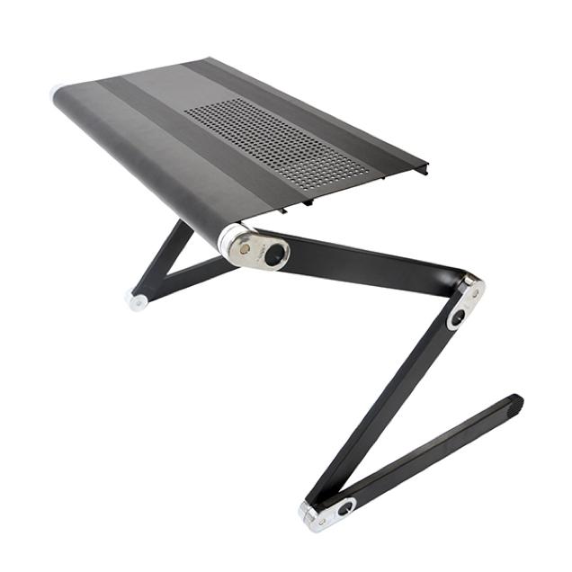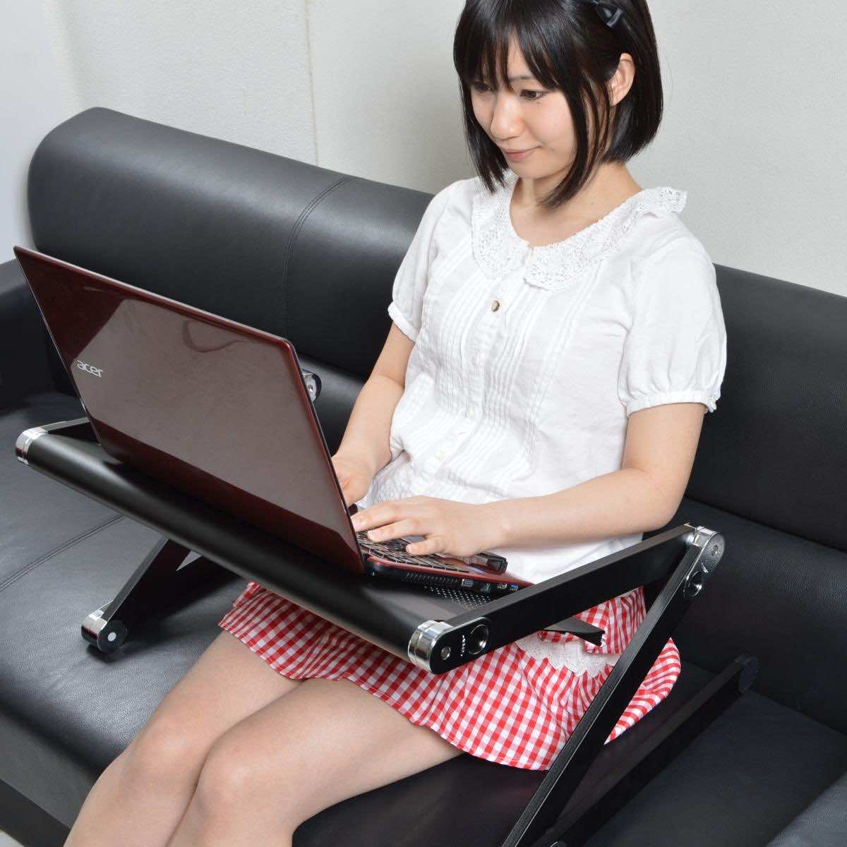 偶尔被称为'超级向上的打zing桌‘,这张专门设计的桌子使您可以使用其三个铰链,两条腿和一个锁来将其调整为您想要的任何角度,以保持其位置和角度牢固。还向其添加了冷却风扇,以防止您的机器过热,即使笔记本电脑位于桌子上或腿上的表面上。