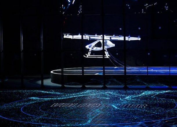 Volocopter来自德国的是一架乘客的无人机和CES 2018,标志着它在演讲期间登上舞台时在美国土地上的首次飞行。