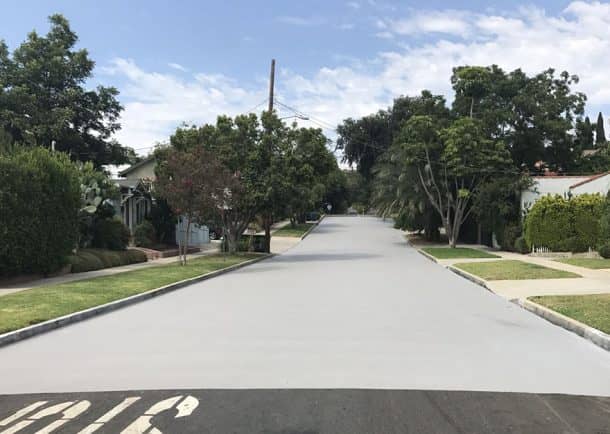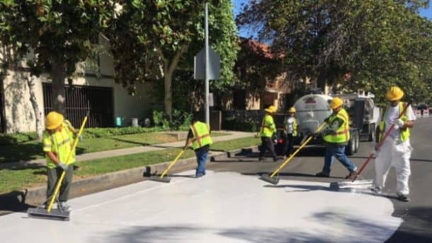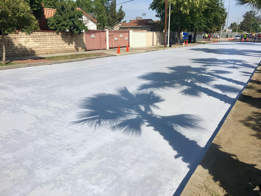 洛杉矶并不是唯一一个采取这一措施的城市。在距离洛杉矶30英里的卡诺加公园市,由于这种白色涂层,一条道路的温度从93华氏度下降到70华氏度。恩西诺的一个停车场被涂上了涂层,温度从160华氏度下降到130华氏度。