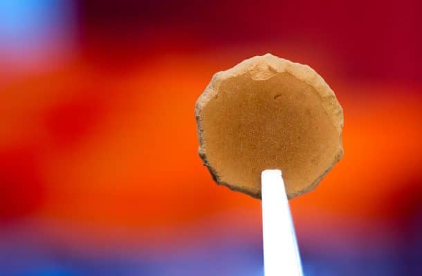 Originally, the researchers aimed to reduce the number of binding polymers in the material. However, they soon discovered that no polymer was required at all to make a brick from Martian soil. The Martian soil simulant called Mars-1a is used to make a brick in a two-step process that requires no heating or additives. First, the stimulant is added to a flexible mold by using a rubber tube. A pressure equivalent to the drop of a 10-lb hammer from a height of one meter is then applied to the soil. The high pressure results in a small round brick, which can be cut into square shapes as required.