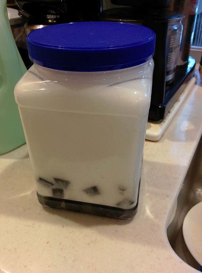 在罐子里装满洗洁精和水。
