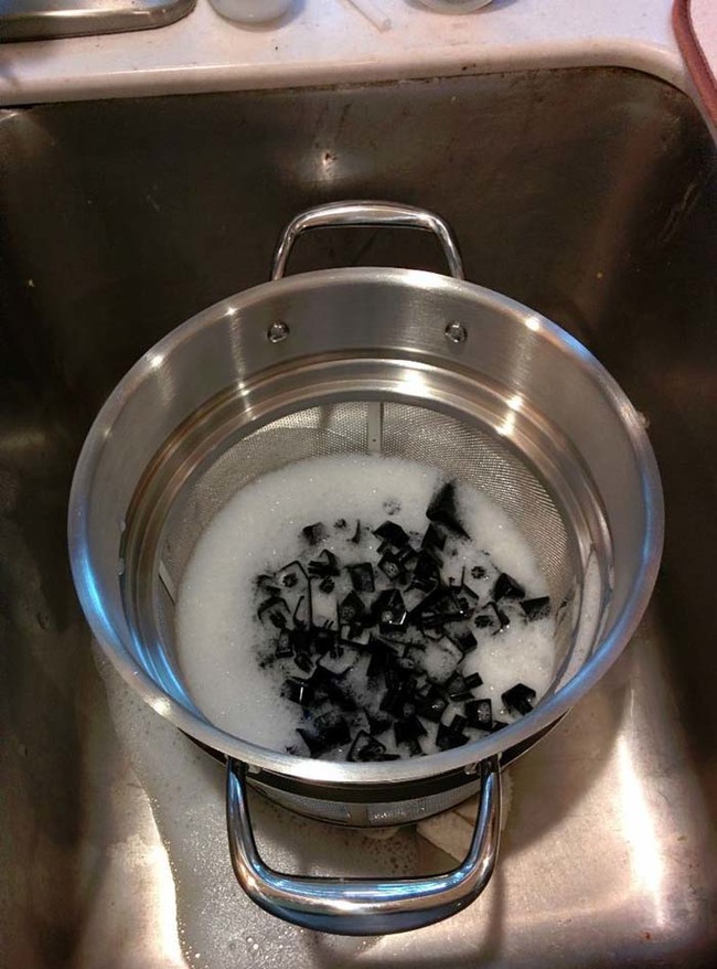 然后把所有的钥匙放在一个容器里,在上面倒一些冷水。