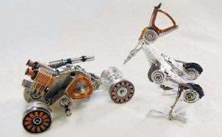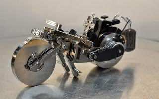 使用硬盘驱动器组件制造的老式摩托车