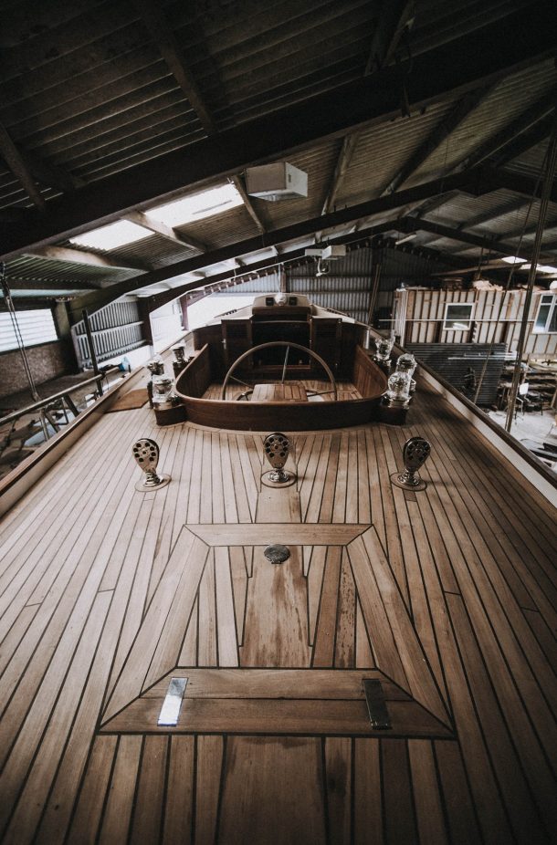 游艇的船体是由加拿大道格拉斯冷杉。1850年代装饰使用的木材在孟买纺织厂。主要是来自埃克塞特13世纪大教堂的屋顶在英格兰西南部。船重30吨,涂上玻璃纤维木材的保护。它有两个大包厢可容纳6人,一个独立的船长。迈克说,“我们的目标始终是建立最高的美,在某种意义上商业约束工作时不可能的。这样的人根本不让船了。”