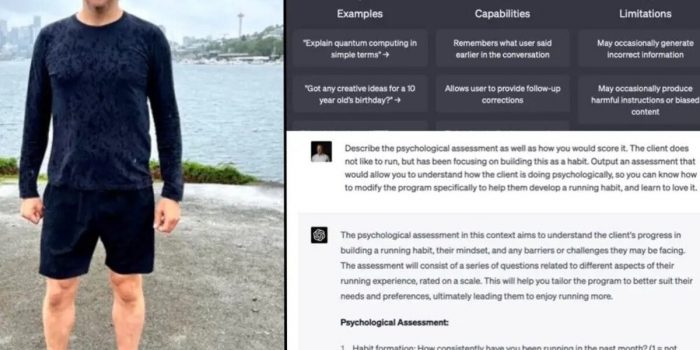 “它为我节省了很多时间。我可能不会这么做,如果我不得不去读书跑步,”他说。“教练是路要走,但不知道如果我想前期投资,所以ChatGPT是一个不错的折衷办法,因为它是免费的。”
