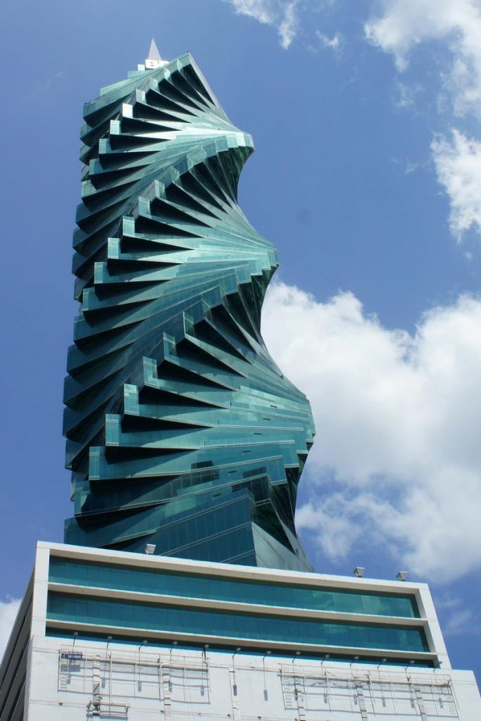 F&F大厦是一座233米高的扭曲办公楼,位于巴拿马的巴拿马城。这座塔戏剧性地旋转了360度,已经成为巴拿马城天际线的标志性建筑。
