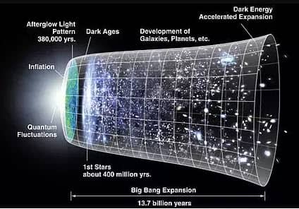 宇宙大爆炸后,宇宙的膨胀比光速快得多。当前证据的事实可以在现象中看到称为空间的度规展开.空间膨胀的速度远远大于光速,这就是为什么光不能穿越宇宙。由于没有粒子参与宇宙及其真空的膨胀,所以它可以以如此高的速度运动。