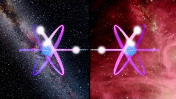 量子纠缠是指一对或一组粒子在相互靠近时形成键的现象。即使在分离时,这些对和群的量子态也不能相互独立地定义。简单地说,如果让两个电子彼此靠近振动,它们就会一致振动。一旦分离,这些电子就会像连接了USB线或脐带一样,即使它们在物理上彼此相隔数光年。如果一个电子被故意移动,另一个电子会检测到这种移动,速度比光速快得多。然而,有用的信息传输是不可能使用量子纠缠,因为这种光的屏障突破是随机和混沌的。更多详情请浏览ERP实验.