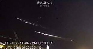 今天早晨,在西班牙南部的天空中看到了神秘的火球,这使人们感到恐惧。当人们想到流星淋浴时,黎明的天空以令人恐惧的景象。事件的视频和照片在社交媒体上流传,直到专家透露,这可能是本月初即将出发的“中国火箭的碎片”。这些明亮的火球现在被认为是中国火箭的碎屑,在西班牙北部更可见,其中包括托莱多,马德里和瓦拉多利德等地区。