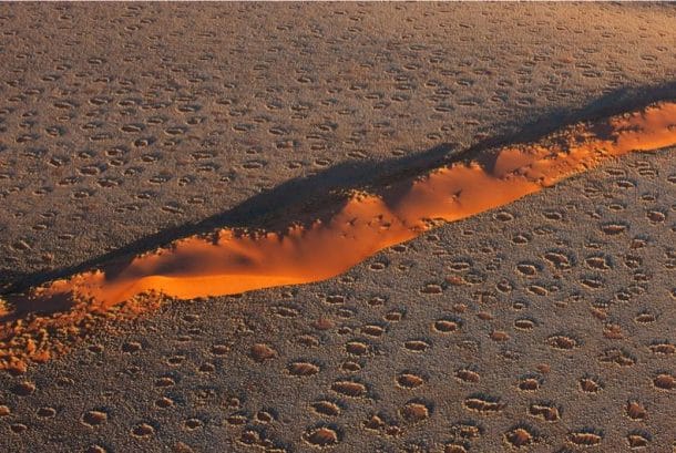 精灵圈在非洲绵延1500英里。每个秃斑的直径从6.6英尺到115英尺不等。这些看起来像陨石坑的精灵斑点激发了数十个关于龙和不明飞行物的神话故事。