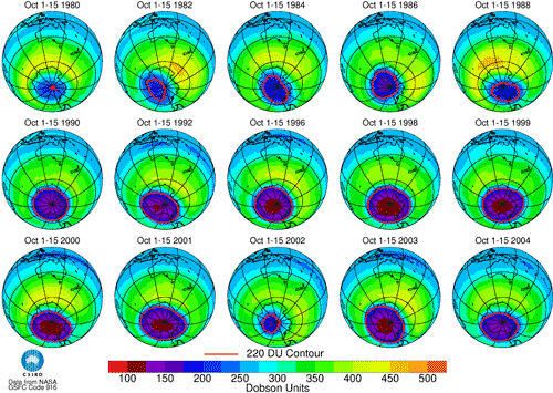 耗尽臭氧层的物质方案是一项国际条约,旨在通过估计众多造成臭氧消耗的物质的生产来保护臭氧层。NASA戈达德太空飞行中心的研究人员利用了NASA的Aura卫星收集的数据,该数据测量了一套痕量大气气体,以了解对臭氧层,地球气候和空气污染的变化。