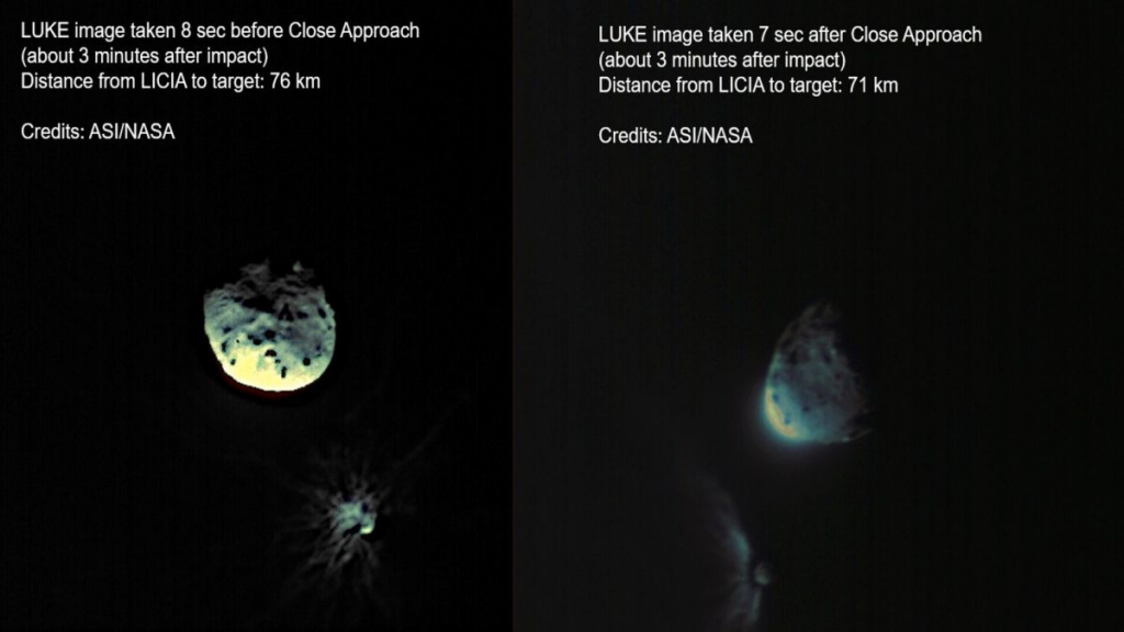 通过光意大利科学家能够见证它立方体卫星成像的小行星(LICIACube)。它有两个摄像头和发射飞镖的影响之前15天。