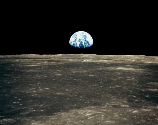 如果你站在月球上,地球将会出现这样的。晶莹剔透的地球及其大气层是可见的在这张照片。