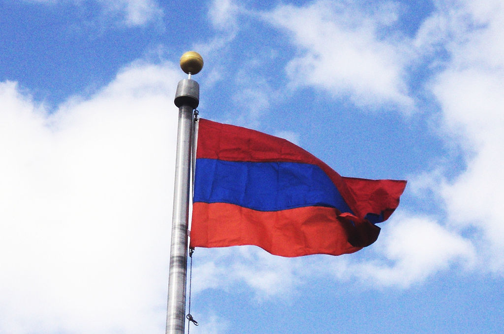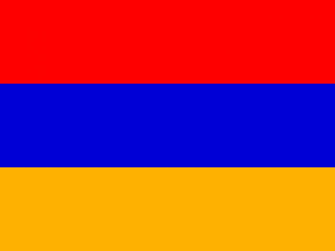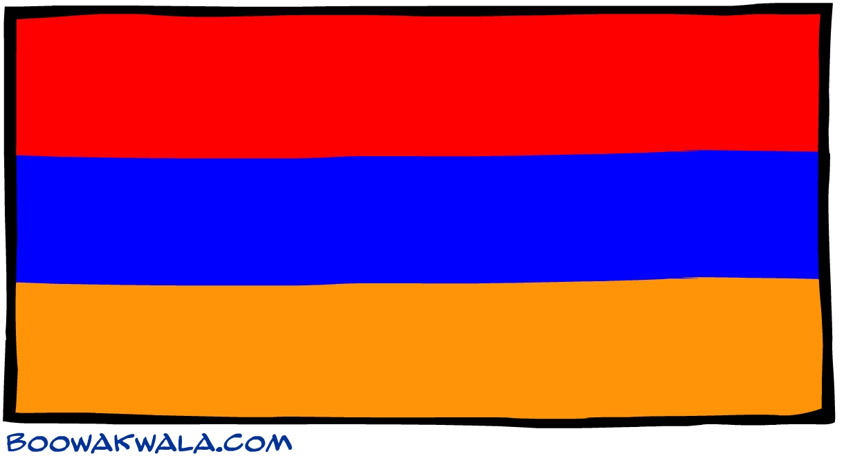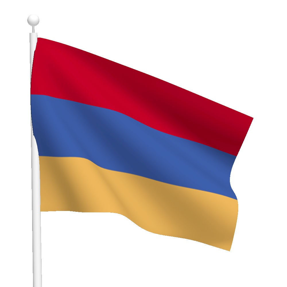 亚美尼亚国旗于1990年8月24日获得批准。亚美尼亚旗帜上呈现的颜色是鲁布尼多夫帝国(Cilicia王国)的最后时期的颜色。矩形形的旗帜包括三个等效水平条带的顶部条状条为红色,中间条为蓝色,底部条为橙色。