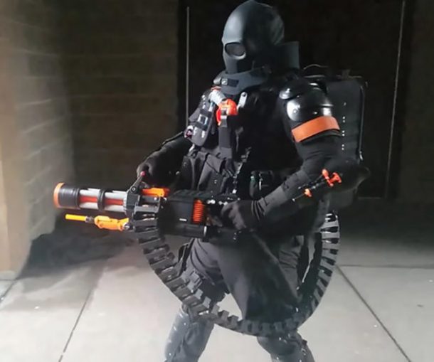 Nerf 's Rival Blaster会在你的后院或休息期间在你的办公室里发射小泡沫球进行一场漂亮的战斗。泡沫球以每小时70英里的速度发射。这对泽维尔队长来说在YouTube上可不是什么好玩的事。他破解了自己的Nerf Rival,把它变成了一支神奇的旋转霰弹枪,可以从背包中发射2000发子弹。