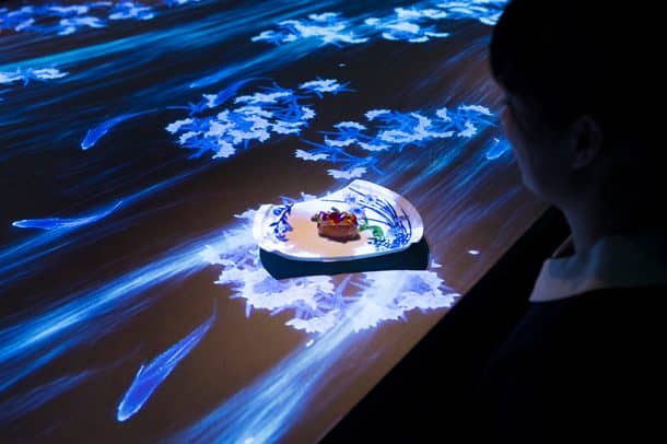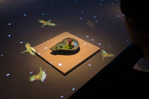 这些投影是根据餐桌上菜肴的大小和形状来选择的,以创造一个反映日本季节变化的惊人变化的环境。这些投影非常逼真,