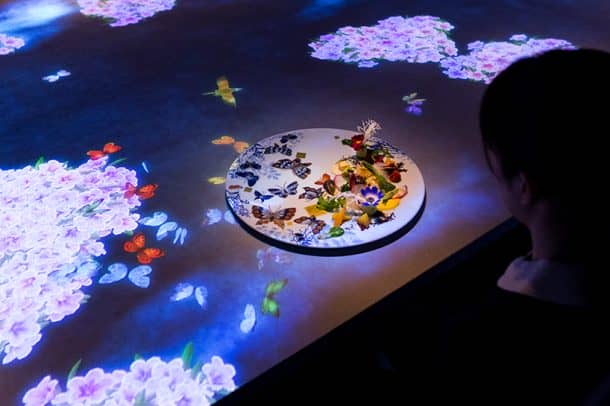 “如果你不动,一只小鸟可能会落在你的手上;如果你突然移动,它可能会飞走。”Teamlab解释道。