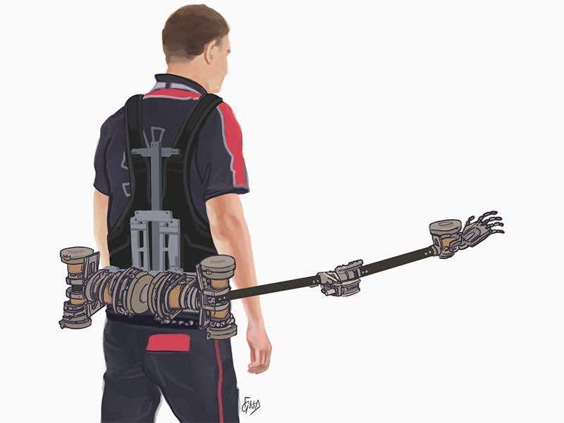 这个神奇的机器人的发明可以像背包一样戴在后面让你在处理和有两个机械臂与重担,也帮助你当你需要一只手来执行一些任务(从房屋钥匙取而带着购物)。这项发明被称为冗余机器人的四肢(srl)和设计,这样他们可以绑在你的背部的机械臂能够过来你的肩膀或在你的腰。这个想法是为了用户时需要提供援助。