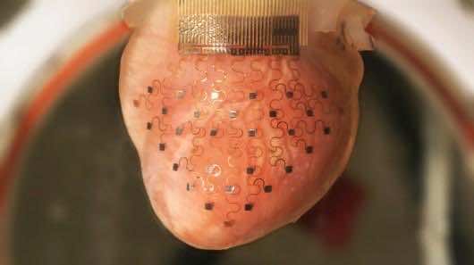 在图像中可以看到的电路实际上是一个传感器的组合,它可以不断地跟踪组织的行为,而电极可以通过电刺激精确地调节心脏肌肉的运动。这是医学领域向前迈出的一大步,一旦应用于人类,它无疑将在未来挽救无数生命。