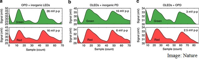安娜咏叹调,电气工程和计算机科学副教授也加州大学伯克利分校的负责人说:“我们发现,如果你与不同波长进行测量,它的工作原理,如果你使用非传统的半导体,它的工作原理。因为有机电子是灵活的,他们可以很容易地符合身体。”这个传感器的最明显的优点是据报道非常少的成本比现有的传感器。研究人员还指出,成本少,用户可以一次使用后丢弃这条。