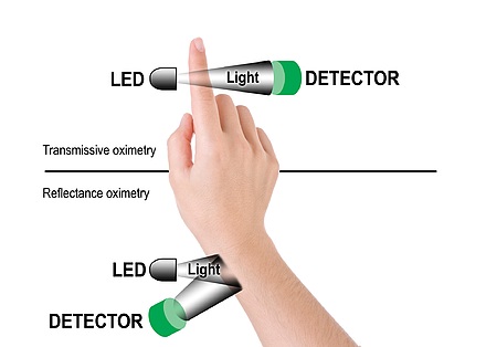 传统的脉搏血氧仪利用火的led红外和红光通过人体的某些部位如耳垂或指尖,而传感器在接收端等待确定多少的光已经设法使其通过。血液富含氧气吸收红外光而血氧含量较低的吸收更多的红光。因此,传感器检测到的两个和传达了血氧水平。