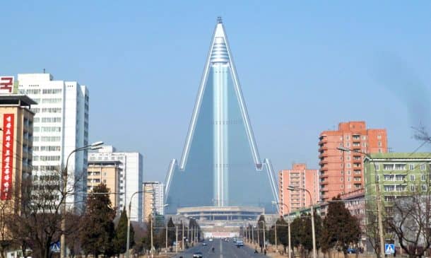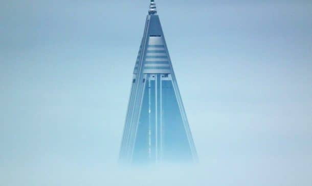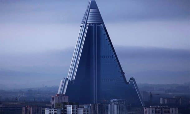 这座高大的金字塔诡异地耸立在朝鲜首都上空。它可能是世界上最引人注目的建筑失败之一。这座建筑曾经是世界最高酒店的竞争者,但现在,它却被称为世界上最大的废弃建筑。