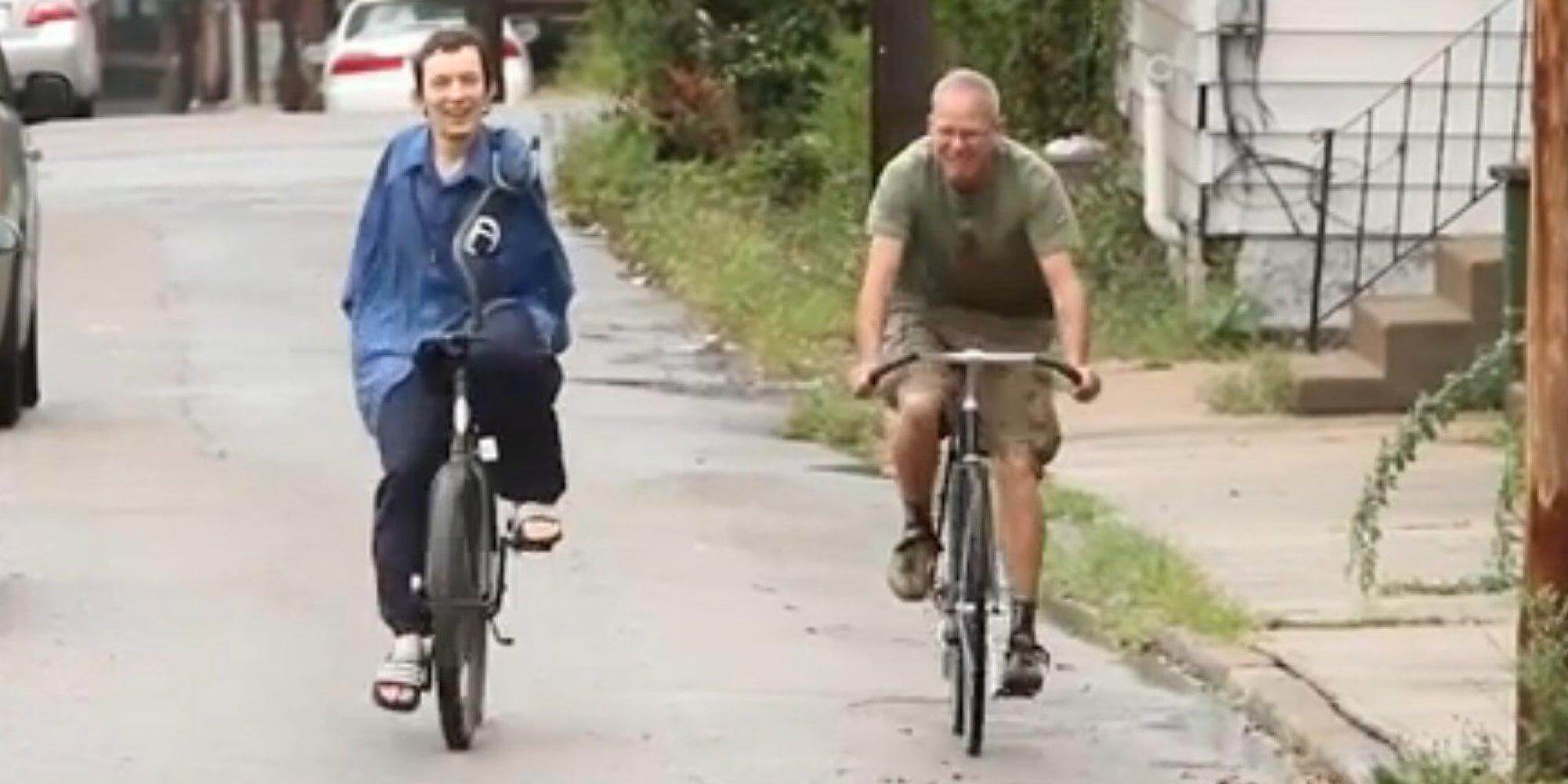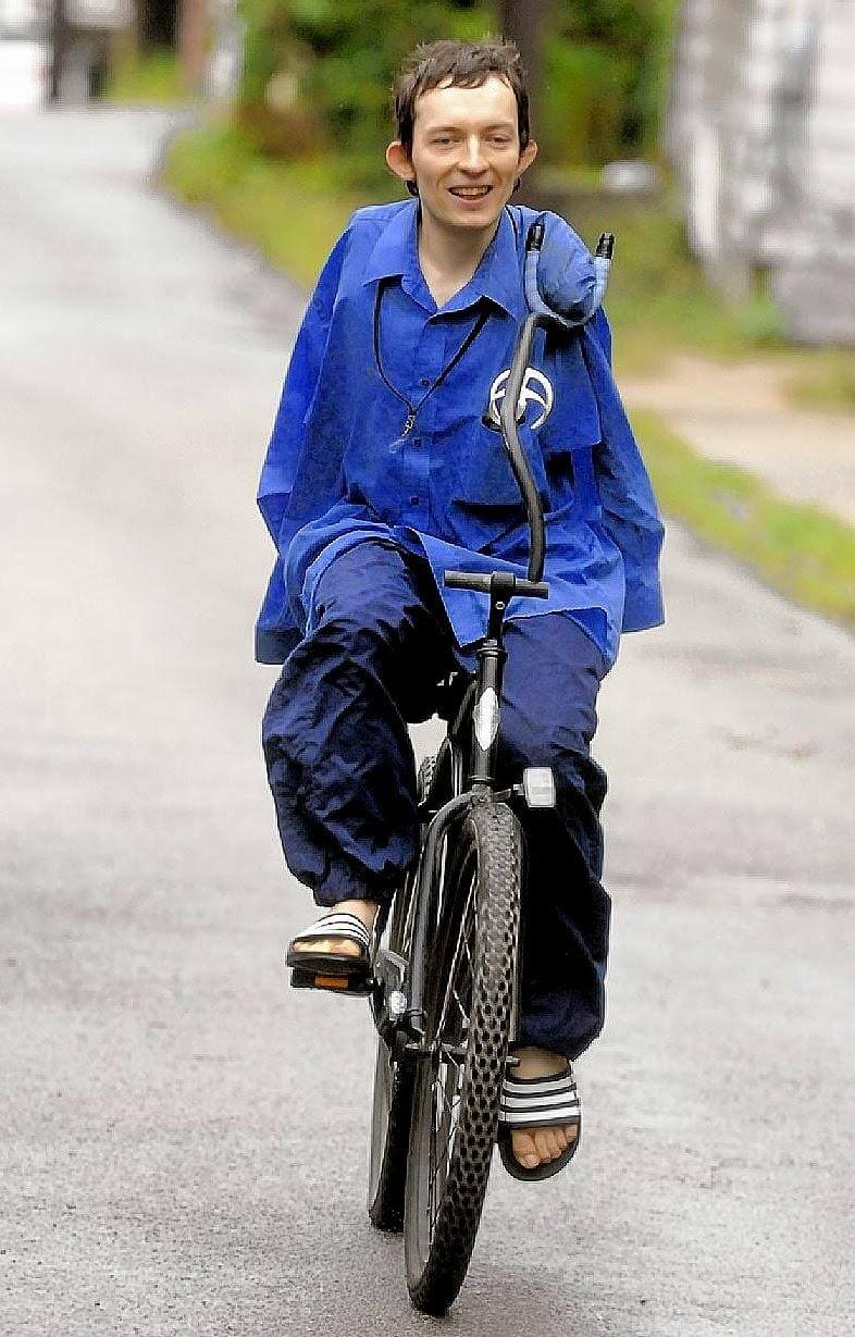 迈克(Mike)出生于前苏联((乌克兰),在1986年发生核事故的切尔诺贝利地区出生时,他的出生缺陷。When he rode the bicycle for the first time, it was in boarding school, where his gym teacher substituted the bike’s handlebars with a metal pipe reaching out to one of Mike’s stumps.
