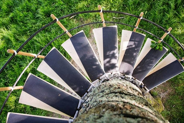 CanopyStair看见的机会进入这个尚未开发的市场,现在提供有用的螺旋楼梯,可以缠绕树。如果他们进入生产,树屋的建设将成为父母要容易得多。棘轮的肩带,可以附加到任何类型的木材相对轻松地。楼梯的每一步是附加到这些带三脚架的帮助下铝制框架。所以,各种规模的很稳定的人来使用!