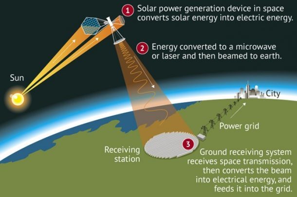 这个想法围绕着从空间吸收太阳能的超高效太阳能电池。然后将能量转换为无线电波,然后发送到地球。这种空间生成的电力可以使附近没有电源的远程区域受益。该项目已经引起了国防工业的关注,因为它将促进他们提供向前运行基地的权力,在此之前,以前燃料的燃料是困难或通过风险的方法传递的。此外,该概念也可以在夜间发电。