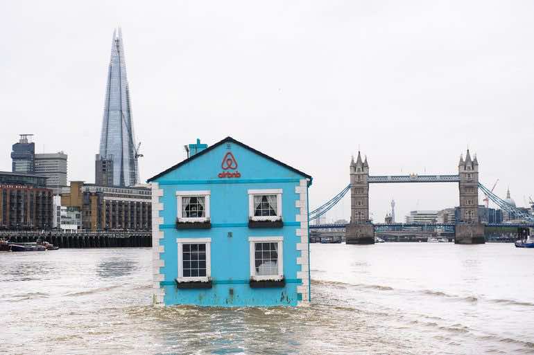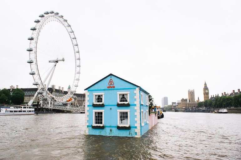 该项目应一直持续到星期五,并且根据Airbnb是第一个被允许在泰晤士河上漂浮的结构。