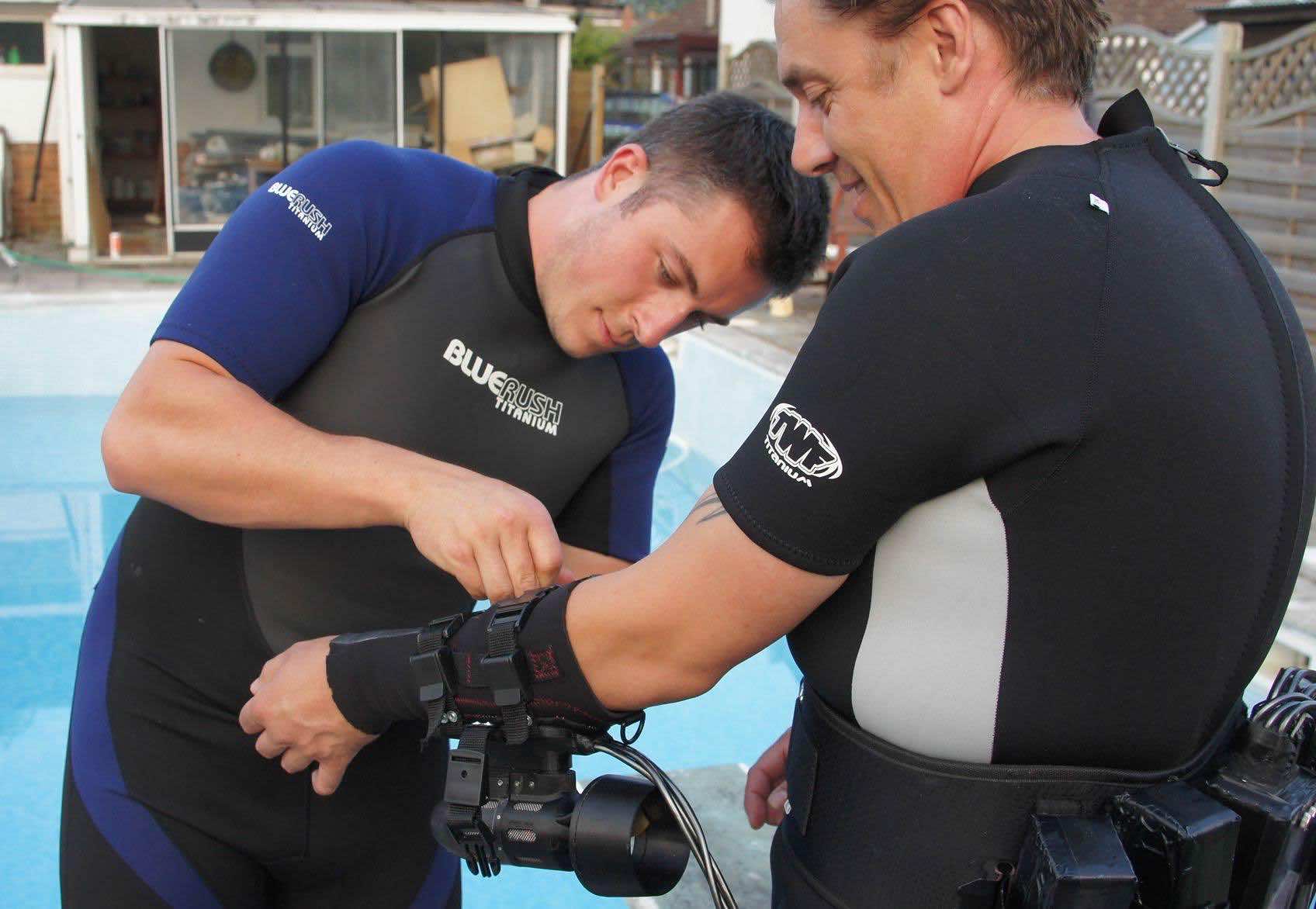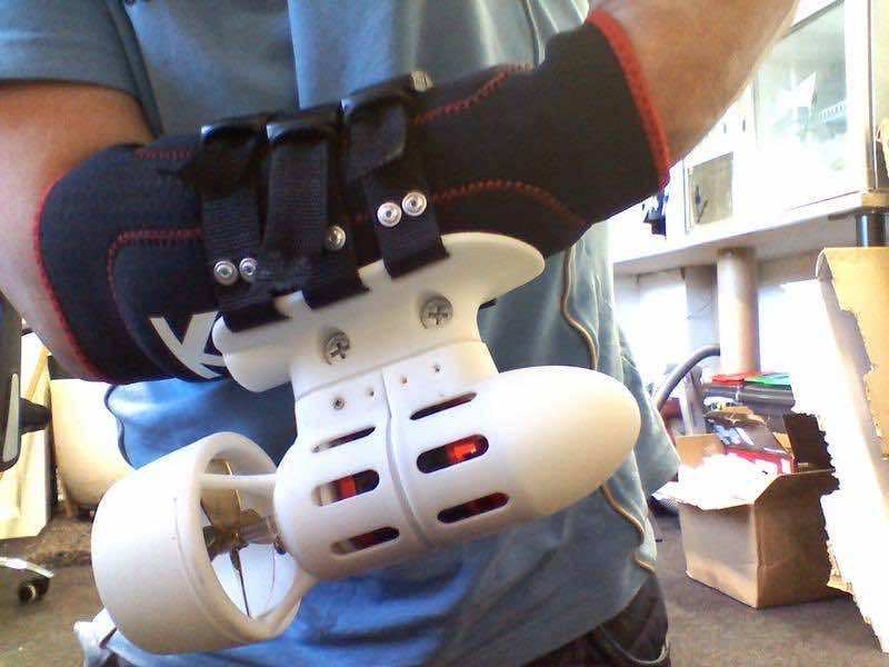 这个小装置本质上是一个便携式系统,可以帮助你在水下推进。这些喷气背包,本质上是迷你的,可以绑在你的手臂上,你就可以像超人或海王一样在水中游泳。设计师是这家英国初创公司的创始人,他们是兄弟。根据兄弟俩的说法,这个家庭脑洞将允许水肺潜水者和自由潜水者“在水下到处飞行”。