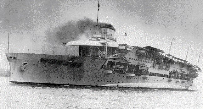 光荣最多可载有48架飞机;首次推荐时,她携带了Fairey Flycatcher战斗机,Blackburn Dart和Blackburn Ripon鱼雷轰炸机以及Fleet Air Arm的Faireey IIIF侦察机。从1933年到光荣,1940年4月回到英国,除了在1930年代中期改装时,她携带了802个中队,飞行了九个小贩Nimrod和3个Hawker Osprey Fighters的混合物,直到重新配备了Dozen1939年5月,格洛斯特海角斗士。