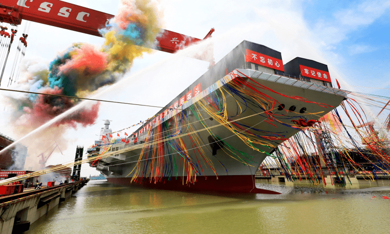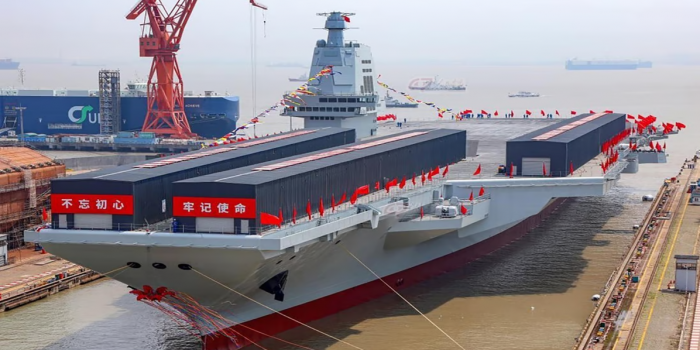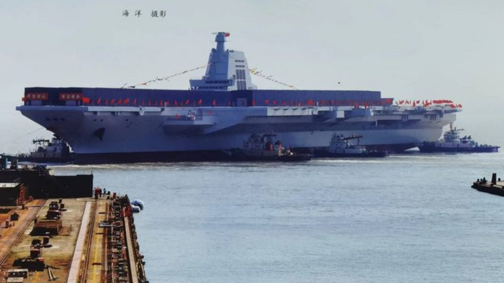 中国的第三个也是最先进的航空母舰,福建,预计今年开始试航,增加国家的军事能力。