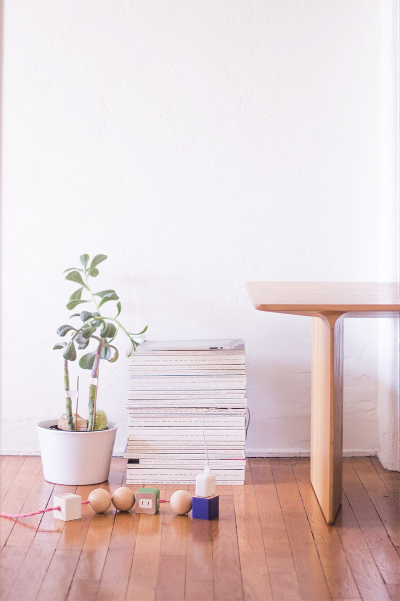 Oon由三个块枫木木组成,中间有圆形的木珠。最终产品类似于您在艺术课上准备的项链,但是,该产品具有特定的应用,并且是电线。电源线是织物包裹的,并为整个小工具提供了相当丰富的饰面。