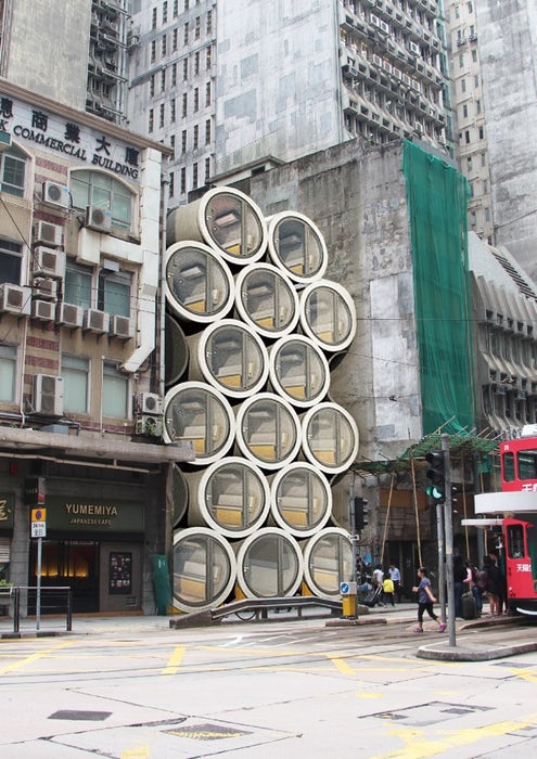 詹姆斯·法Cyberstructure设想管房子安装地区不适合标准建设。这些包括建筑物之间的狭窄的小巷。很多单位可以互相堆叠在一个简单的金属楼梯提供访问所有。