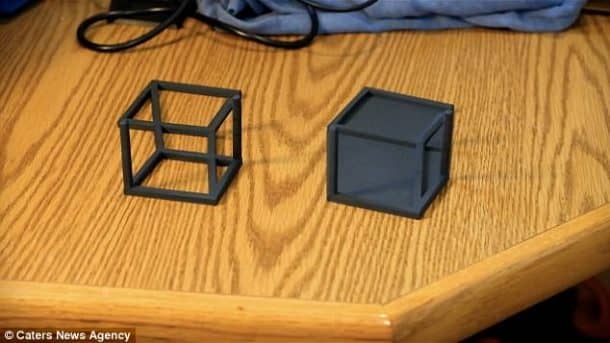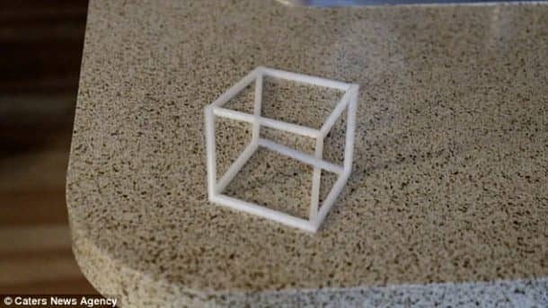 3 d设计了汉森每立方大约两个半小时。”我总是喜欢看到强迫透视粉笔艺术,”他说。“2014年我第一次3 d打印机。打印机已经在短时间内取得了长足的进步和他们作了很多改进,所以我目前2016年3 d打印机。这个想法的错觉立方体在半夜来找我,当我醒来,开始搜索在线,没有看到这一点。我知道这对我来说将是一个有趣的挑战创造。”