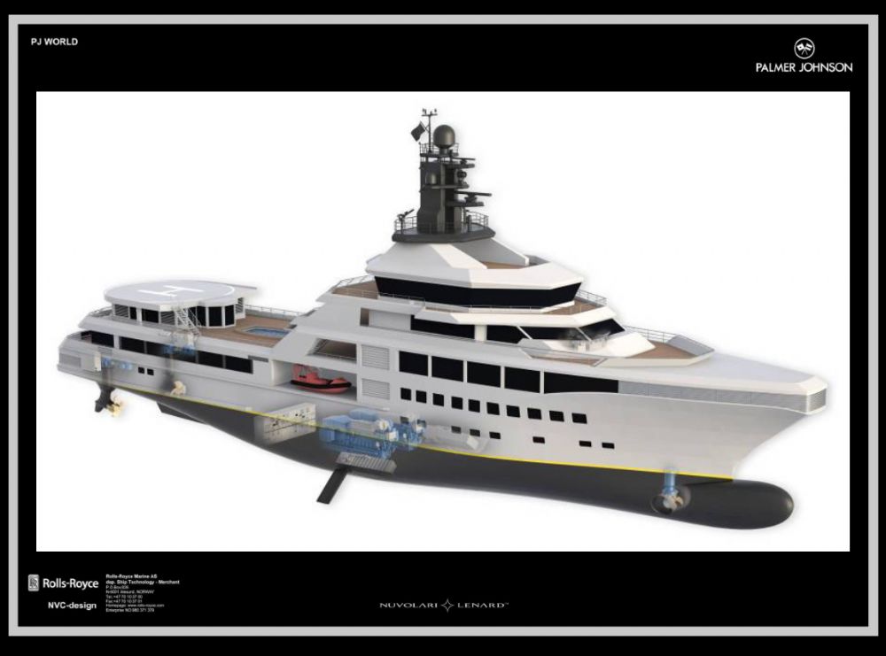 游艇将归功于4个劳斯莱斯海洋卑尔根柴油发电机,最高速度为16.5节。内部和外部设计是由屡获殊荣的设计公司Nuvolari Lenard进行的。游艇还设有Helipad,还可以配备能够缩回的平台;将直升机从船上的机库中降低并升级到机库中。