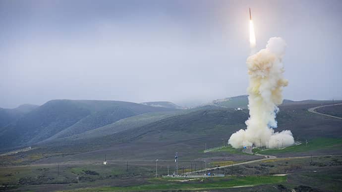 美国刚刚进行了另一个导弹破坏试验证明其弹道导弹防御计划的力量。下面的令人难以置信的画面显示了一个空白的导弹,发射的夸贾林环礁环礁在马绍尔群岛,被一个拦截导弹击落被美国陆基中段防御,在太平洋上空或GMD系统从加州范登堡空军基地发射。