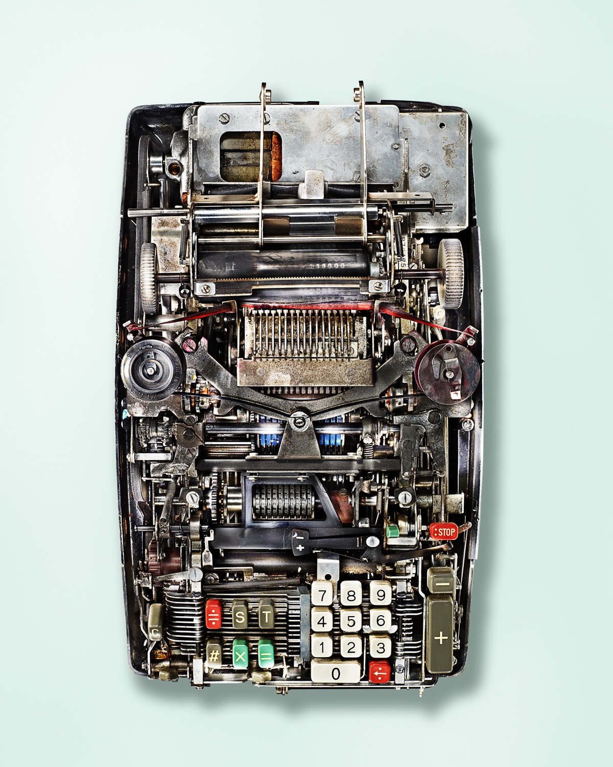 摄影师凯文·托米(Kevin Twomey)在他的项目“低技术”(Low Tech)中拍摄了机械计算器以及它们内脏的样子。机械计算器是电子计算器的祖先。这些巨大的金属盒子有打字机那么大,在当时价格不菲。事实上,它们并没有大规模生产,而是作为艺术创作而被珍视。