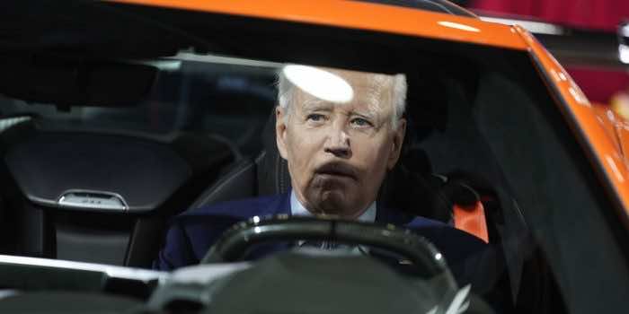 然而,民主党总统跳入了一个明亮的橙色雪佛兰Corvette Z06的驾驶员座位,该卫星Z06起价为106,000美元,不是电动汽车 - 并与GM CEO CEO Mary Barra一起发射了发动机。