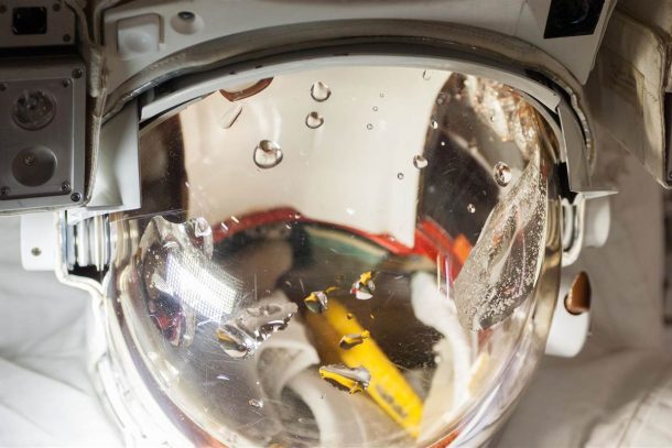 压力升起缓慢,卡西迪挤压了帕尔米达诺的手,并收到了确定的信号。到那时,卢卡(Luca)开始呼吸和说话,但由于水被水破坏了通信链接,因此没有发出声音。当压力最终均衡时,Nyberg急于卸下宇航员的头盔,以擦去脸上的水。