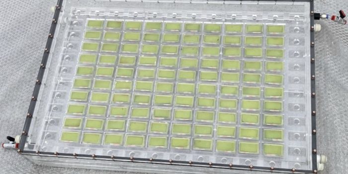 人工树叶由一个小型广场,绿色光电阳极表面,负责捕捉阳光。一个更复杂的“photoreactor”系统,包括连接气缸,描述了一个图像由SciTechDaily共享。一旦暴露在阳光下,能源生产的过程就开始了。