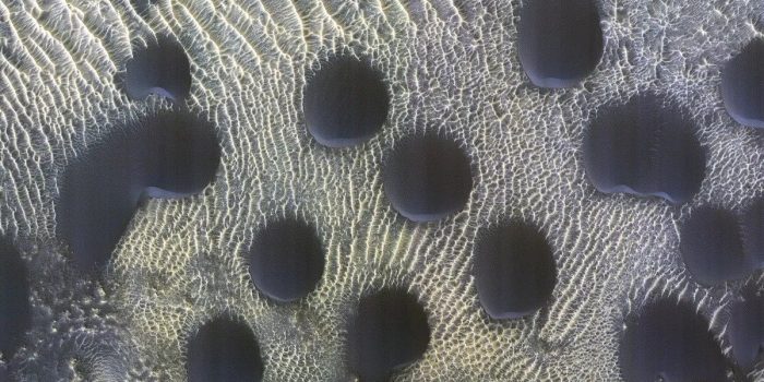 “各种形状和大小的沙丘在火星上很常见。在这个例子中,沙丘几乎是完美的圆形,这是不寻常的,”行星地质学家阿尔弗雷德·麦克尤恩评论道。