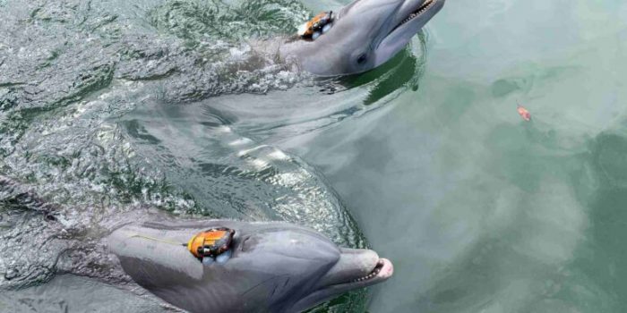 一篇新论文在佛罗里达群岛海豚研究中心的研究一对海豚命名为三角洲和里斯,他们配备录音机来确定他们互相沟通的方式在应对不同的响亮的声音通过扬声器,他们为管道池。