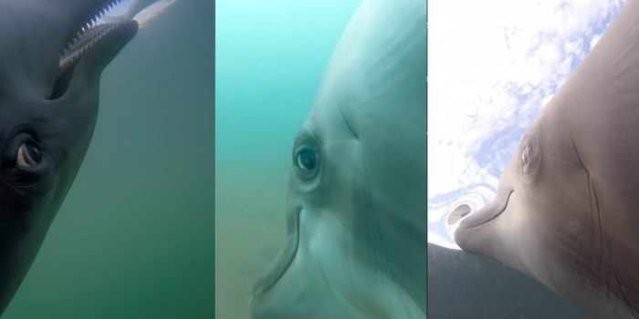 一些摄像头放在动物的背上,可以欣赏它们的吹孔,但另一些相机则在动物的侧面,以最好地露出他们的眼睛和下巴。