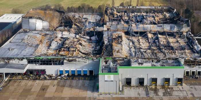 奥卡多(Ocado)是位于英国的仅在线杂货店。不幸的是,在7月16日,其中一个仓库机器人碰撞并造成大火,导致有限的损失。