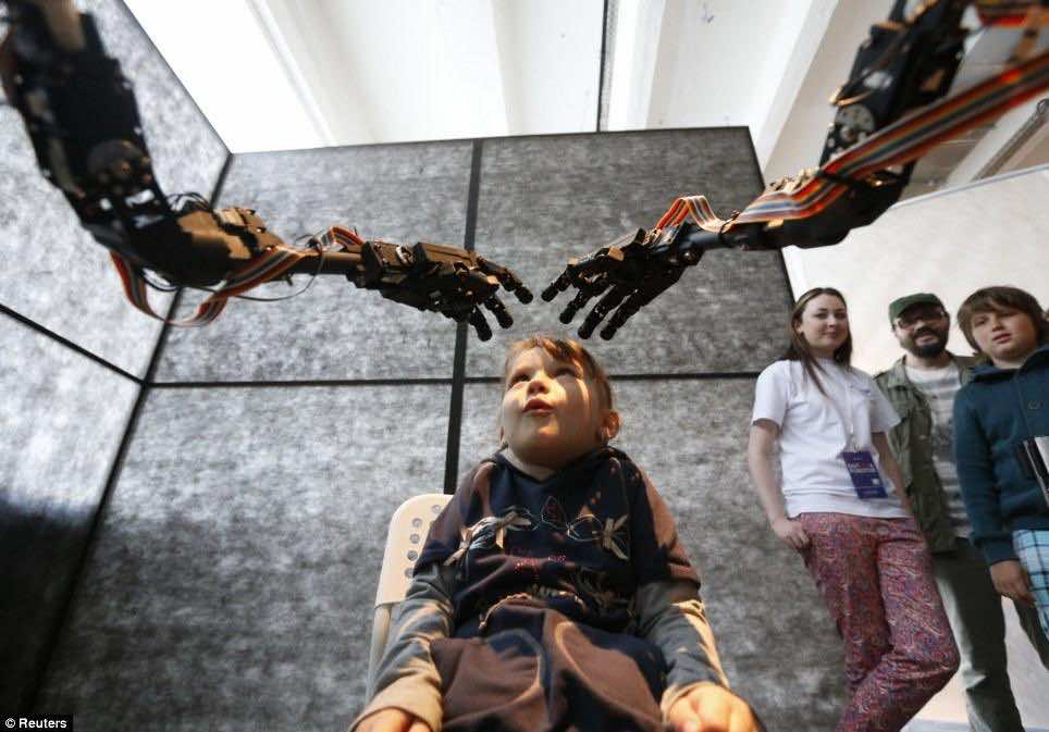 机器人球展览是在莫斯科举行的一个月长期展览,其中包括来自世界各地的40个机器人,包括加拿大,美国,英国,亚洲和新西兰。