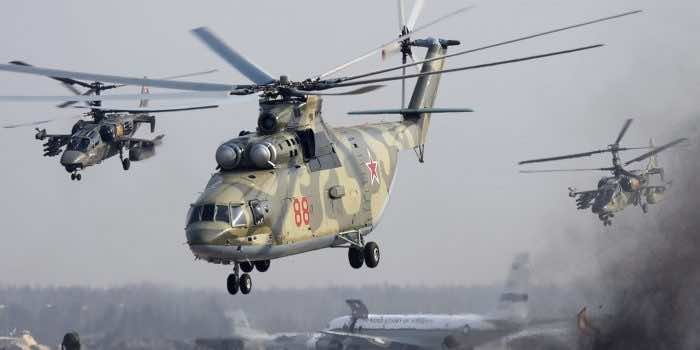 俄罗斯生产的其他许多直升机的发动机模型。然而,俄罗斯的米- 26运输直升机是一个不同的业务。一个米- 26可以重达56吨满载时,包括货物重20吨或更多。它有两个d - 136发动机和超过33米长。每个引擎已经超过11000马力。