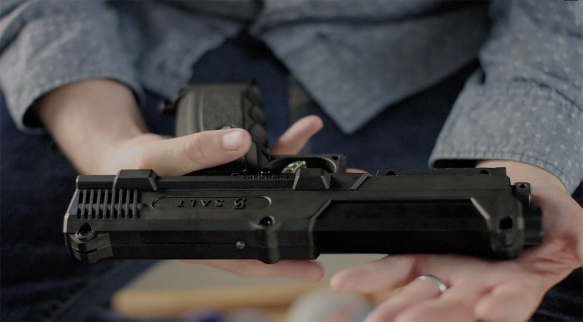 唯一的防御选择是真枪或泰瑟枪和胡椒喷雾。第一种需要培训和许可,而其他选择的范围非常有限。因此,SALT枪诞生于这对夫妇与霍尼韦尔工程主管安迪·麦金托什(Andy McIntosh)的会面。该武器将武器的控制与胡椒喷雾的无害效果结合在一起。该化学品已被5000多家机构列为安全有效。SALT枪的第一个原型是为这个家庭准备的,但他们决定与世界分享他们的发明。
