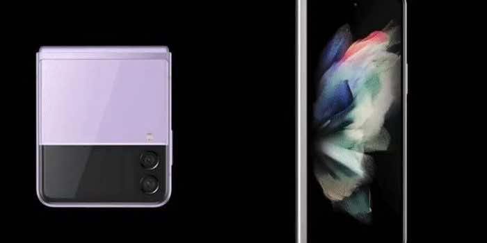 上面的手机是Z Fold 3, Blass在推特上发布了白色、绿色和黑色三种颜色。他不仅泄露了Z Fold 3的官方渲染,而且还泄露了Z Flip 3。Z Flip 3预计有紫色、金色、黑色和绿色四种颜色。你也可以看看下面的Z Flip 3。